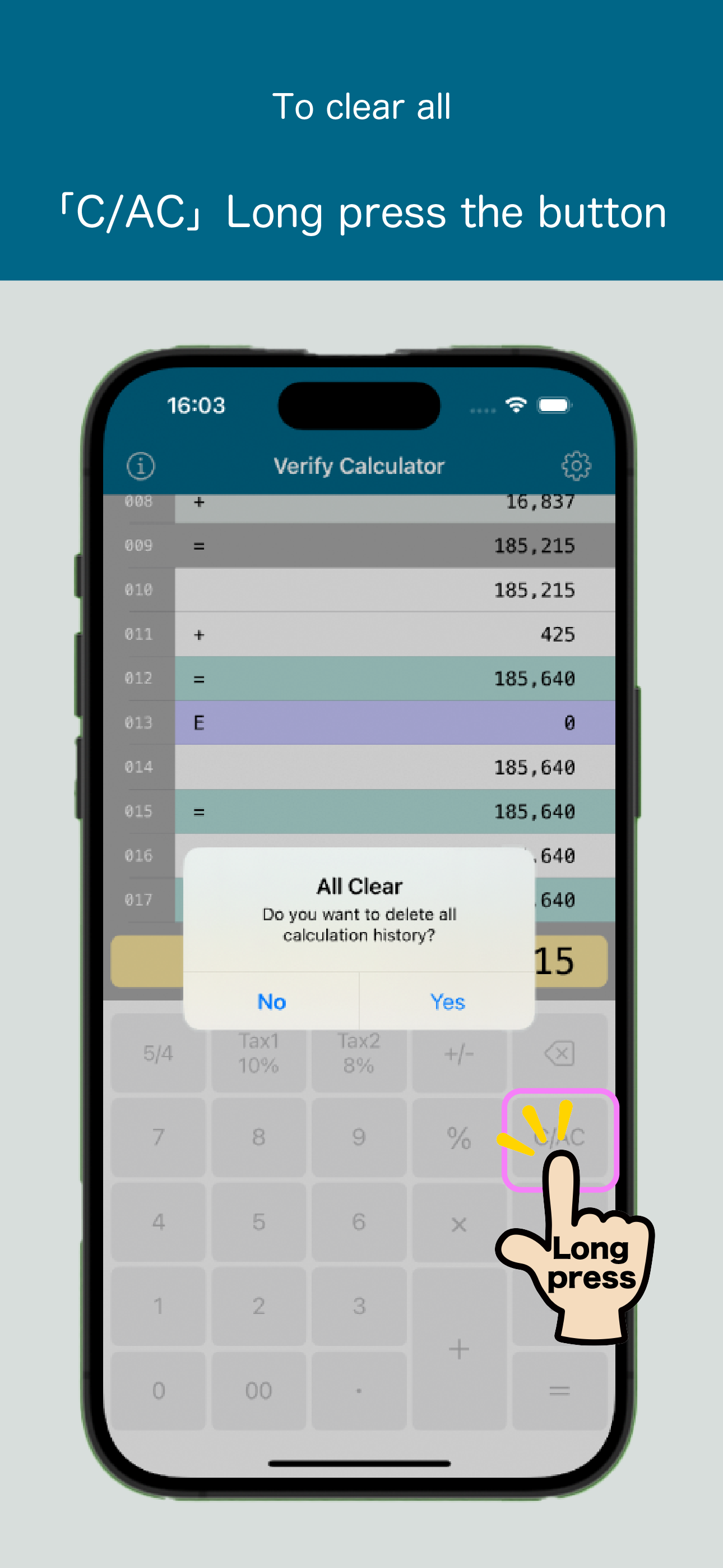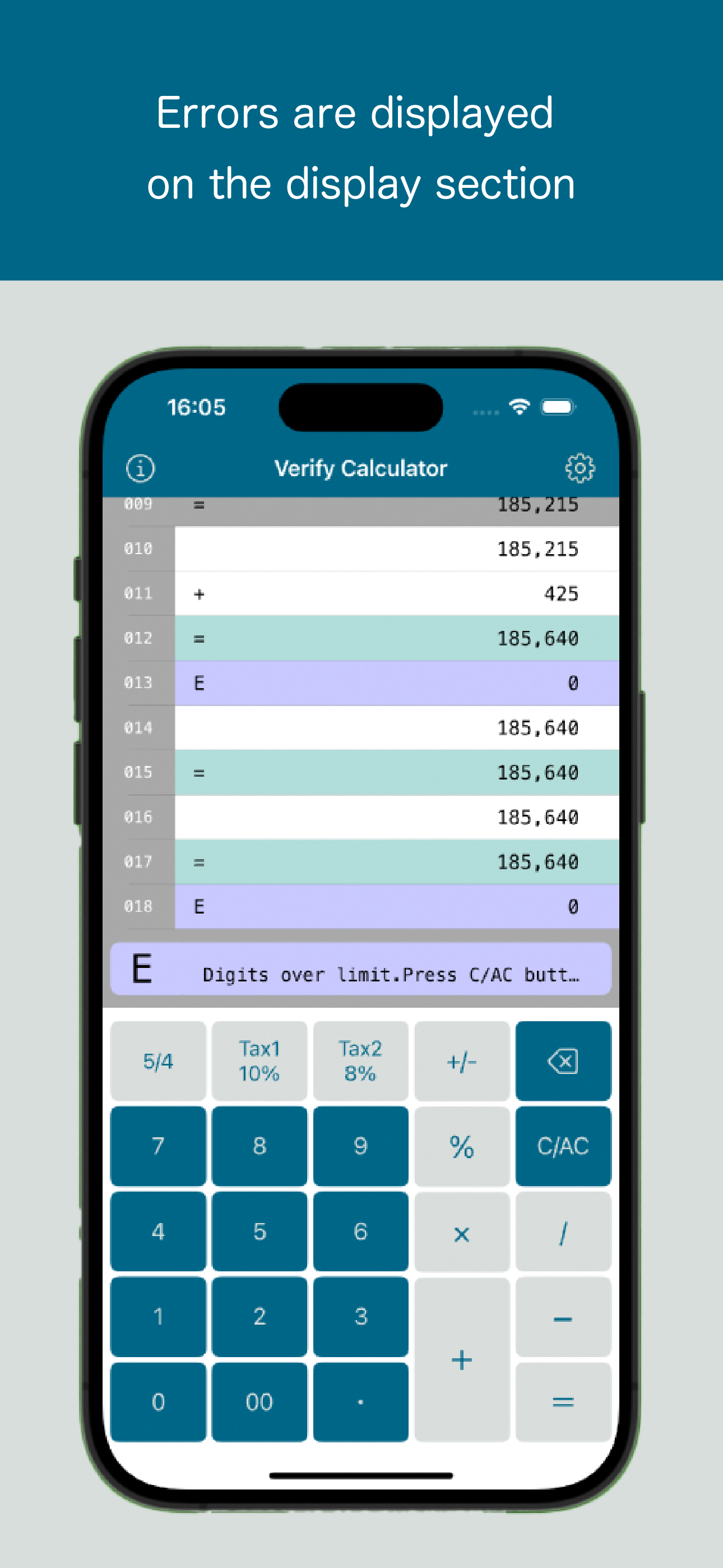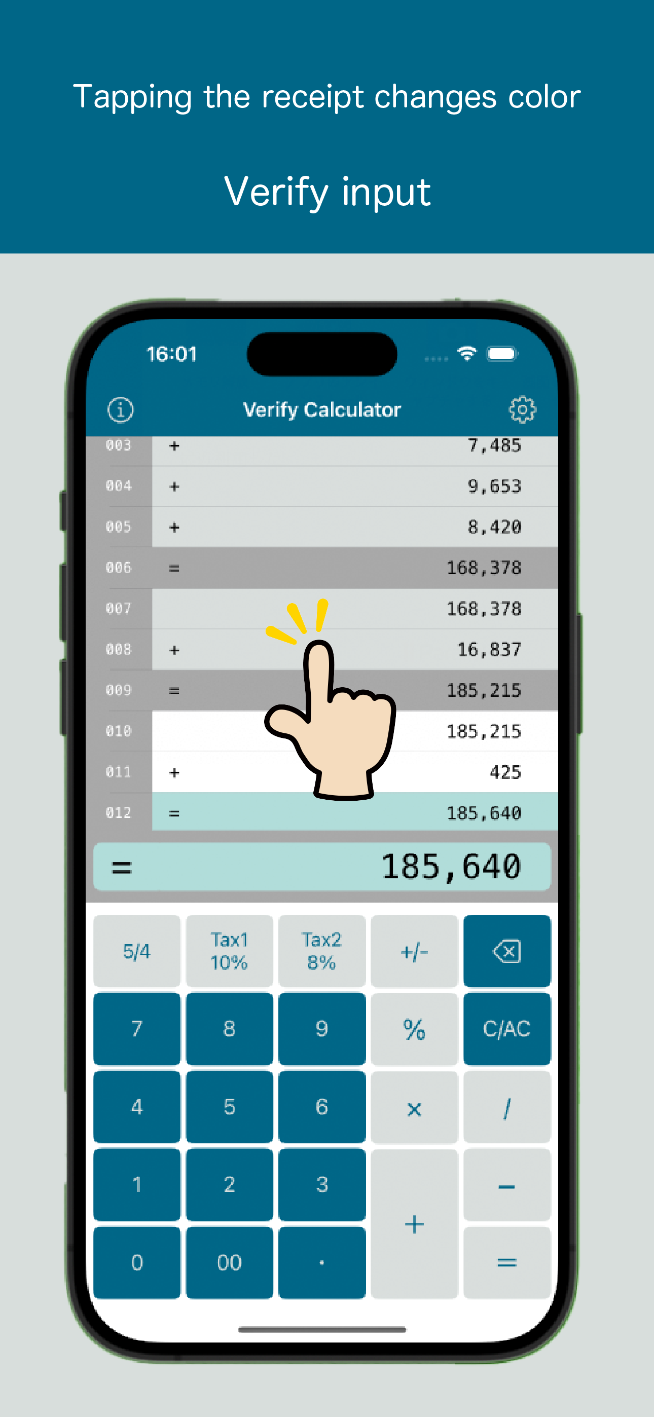 Verify Calculator is a convenient calculator app that allows you to easily check the calculation results of invoices and receipts. This app displays calculation results in a list, similar to how they appear on a receipt, making it easy to visually verify them.
